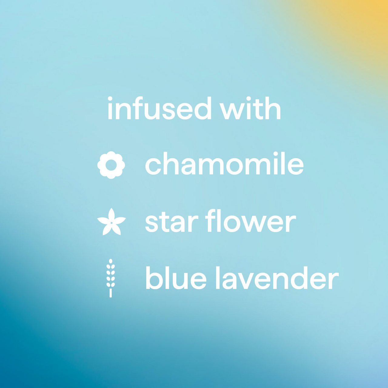 - Infused with chamomile. starflower + blue lavender.