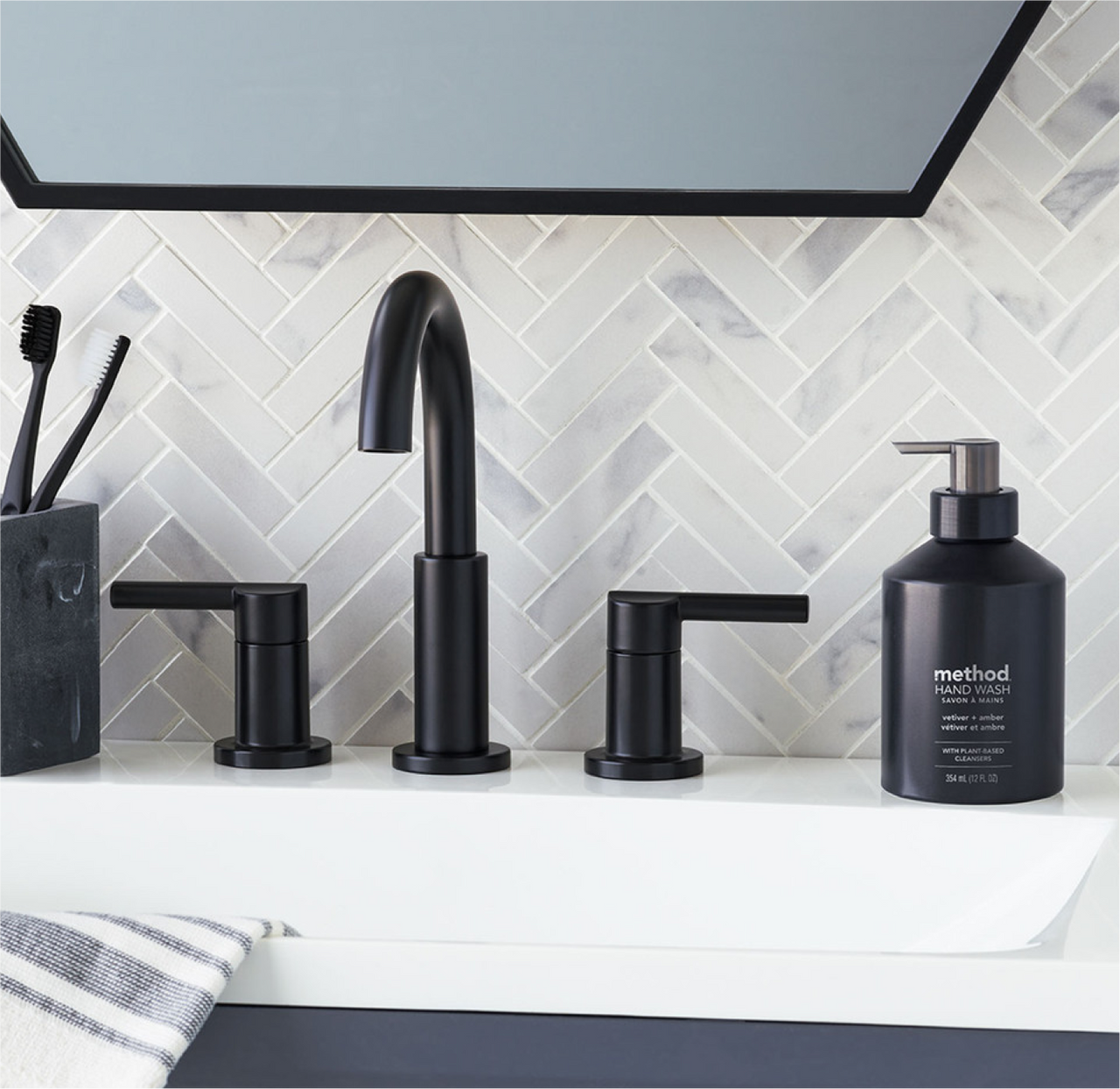fall in love with method’s luxurious vetiver + amber gel hand wash in a refillable black aluminum soap dispenser. created with thoughtfully chosen cruelty-free ingredients without parabens or phthalates. this reusable hand soap will elevate your mood with its rich. smokey notes of vetiver and sweet notes of amber. leaving you with a comforting woodsy aroma. check out other